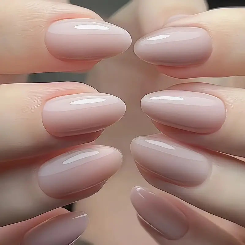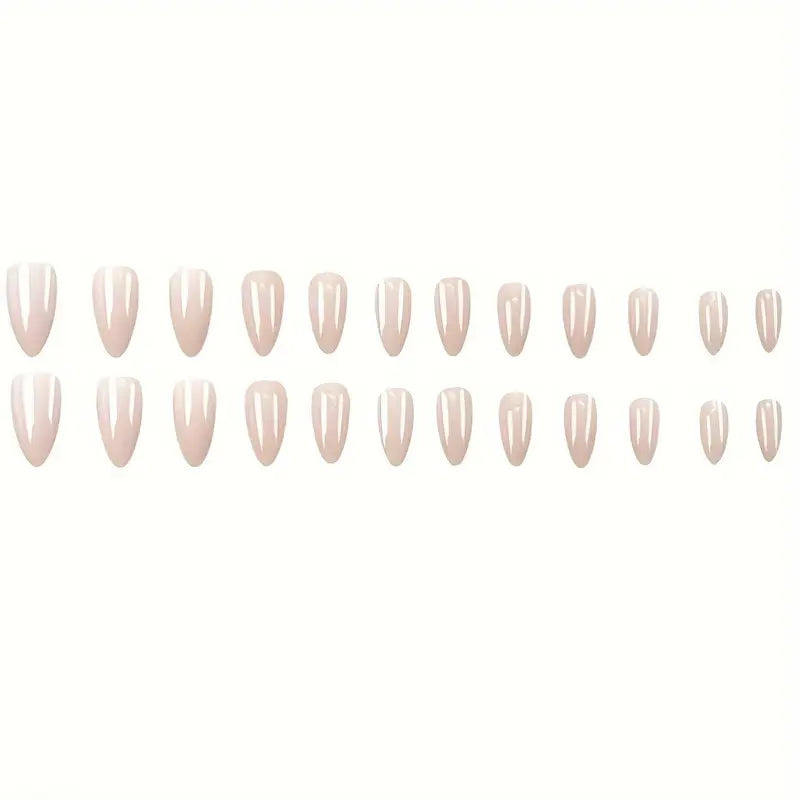 24pcs Nude Almond Shape Press-On Nails – Medium Length, Glossy Pure Color