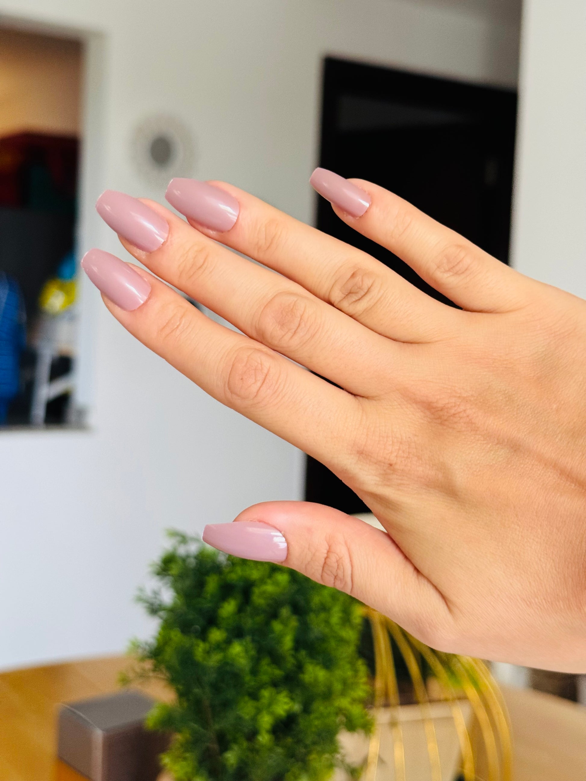 These coffin-shaped press-on nails offer a chic French style for parties, dances, and daily wear in Dubai. Perfect for women who love a bold, effortless look.