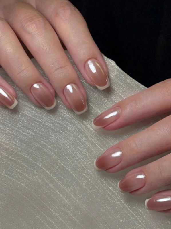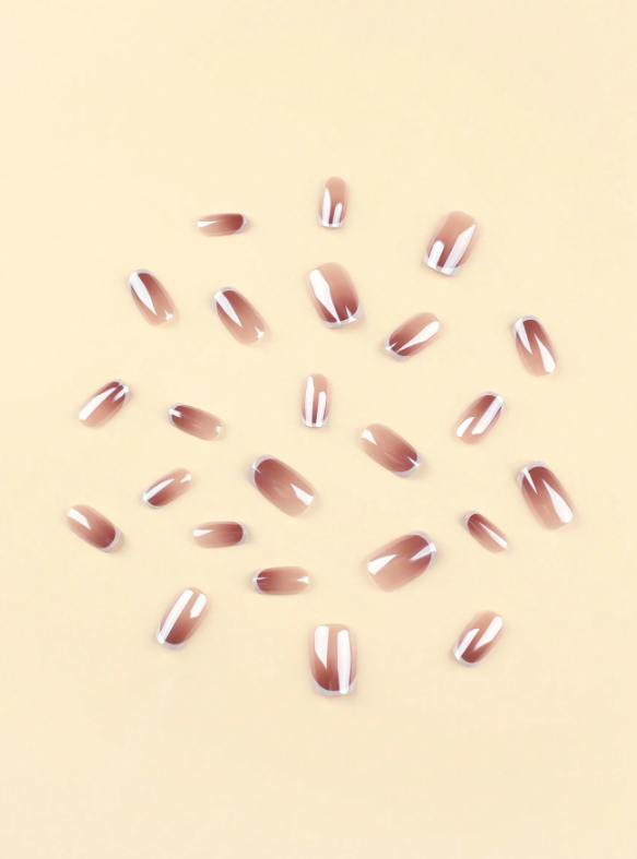 24pcs French White Gradient Press-On Nails โ Short Coffin Shape Acrylic Fake Nails
