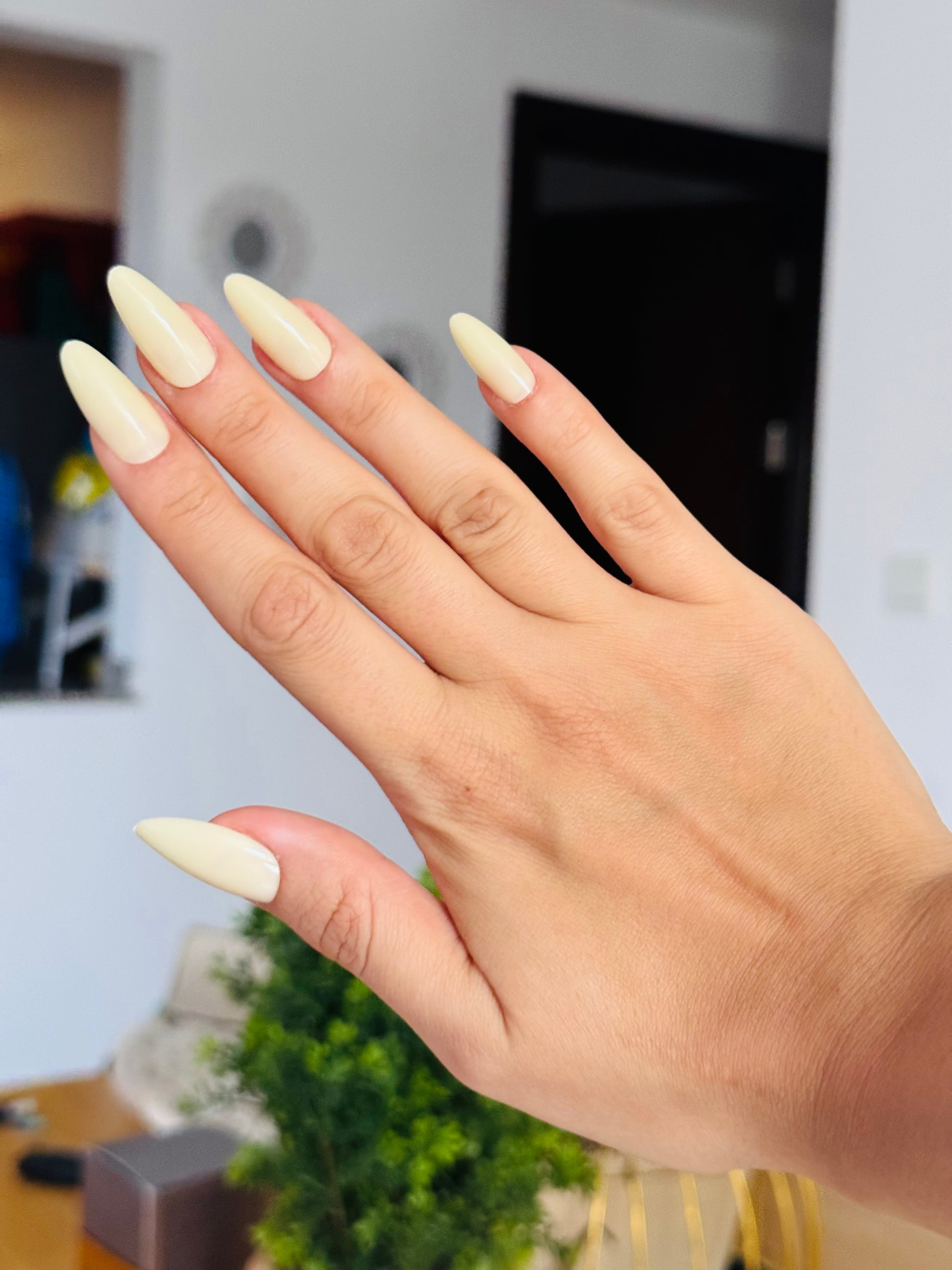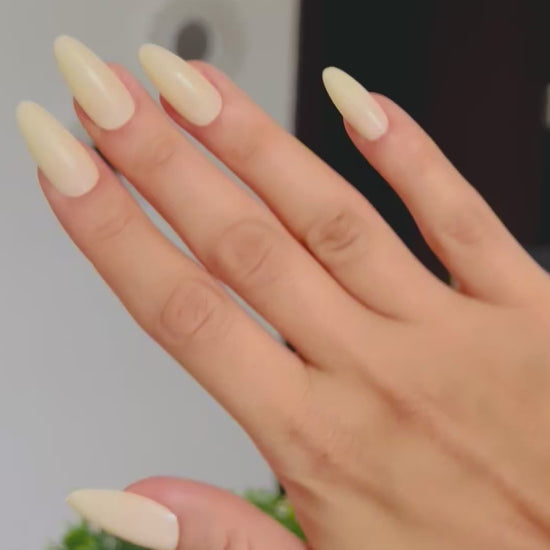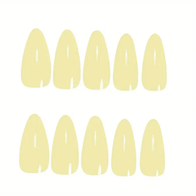 Brighten your manicure with this set of 24 almond-shaped press-on nails in a soft, elegant duck yellow solid color. Designed for short length wear with a glossy finish, these press-on nails are perfect for everyday use, date nights, or special occasions, offering a stylish and polished look without the salon cost.