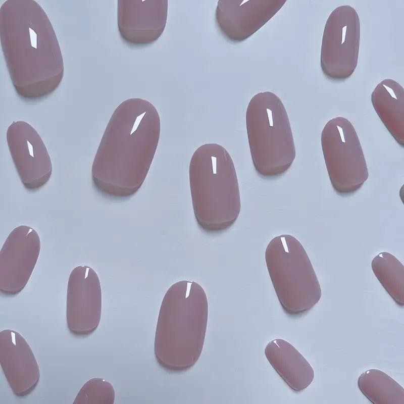 24pcs Light Purple Oval Press-On Nails – Solid Color, Reusable & Easy to Apply