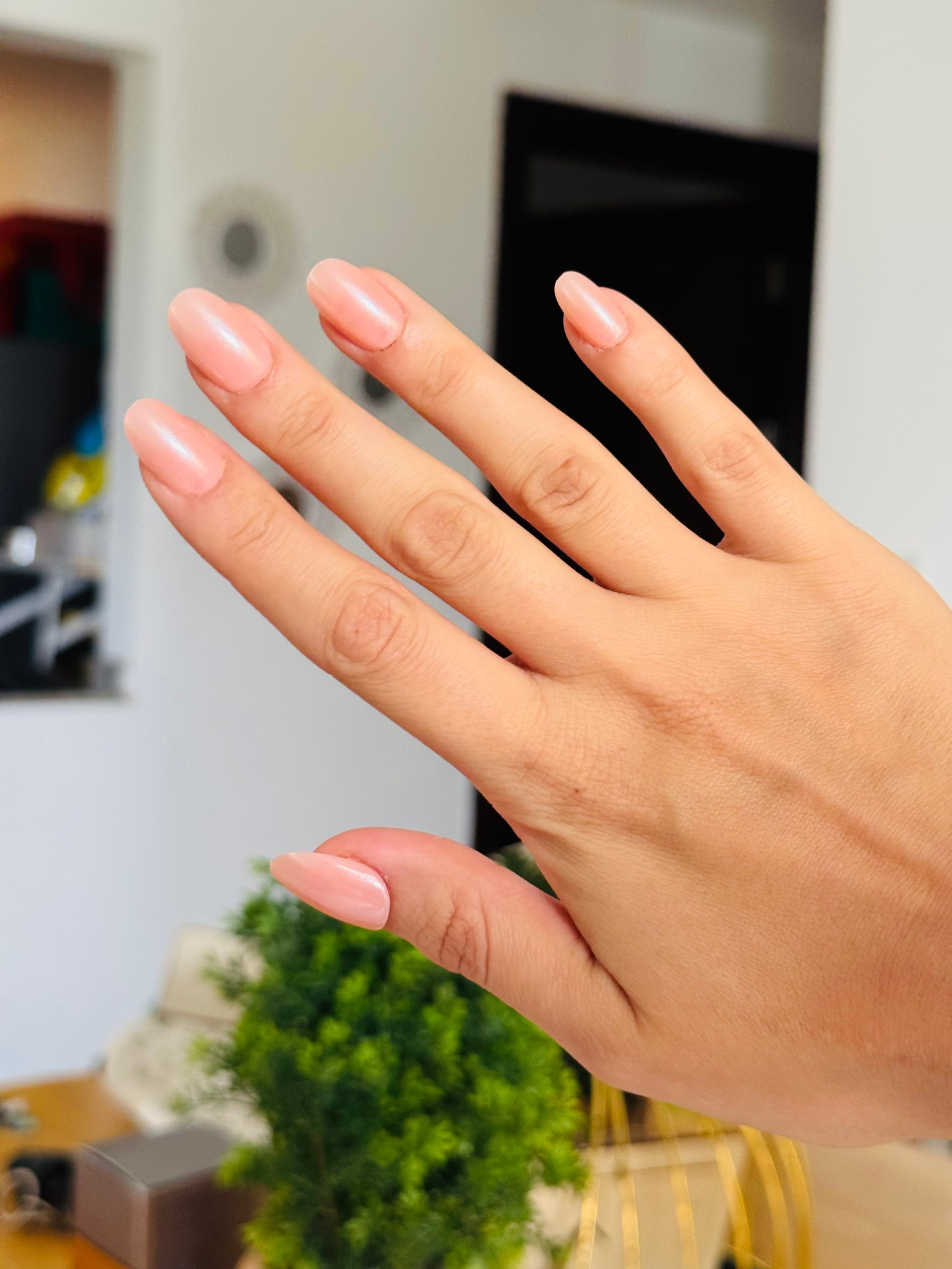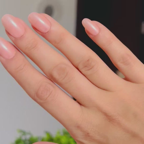 โจ 24pcs Nude Pearlescent Press-On Nails โ Short Oval, Glossy Finish