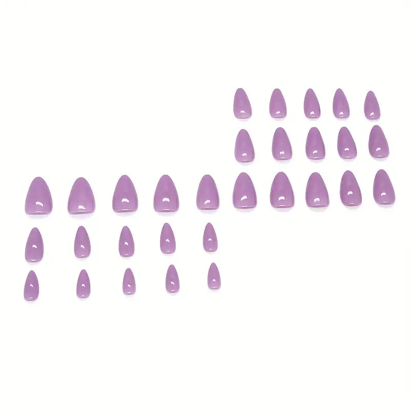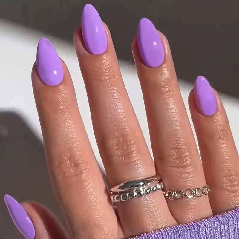 Add a touch of elegance to your manicure with this set of 24 light purple almond-shaped press-on nails, featuring a delicate spring lavender garden design. Perfect for creating an effortless and elegant look, these glossy detachable artificial nails are ideal for seasonal festivities, New Year celebrations, or everyday chic style.