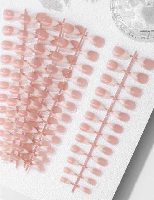 Short Almond French Press-On Nails – Gradient Pink & Milky White