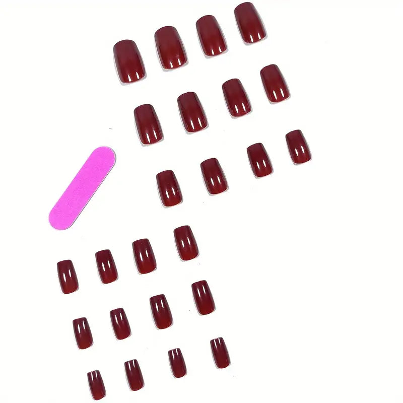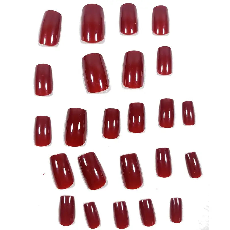 ✨ Glossy Cherry Red | Short Square Shape | Solid Color | Reusable & Easy to Apply | Complete Nail Kit ✨