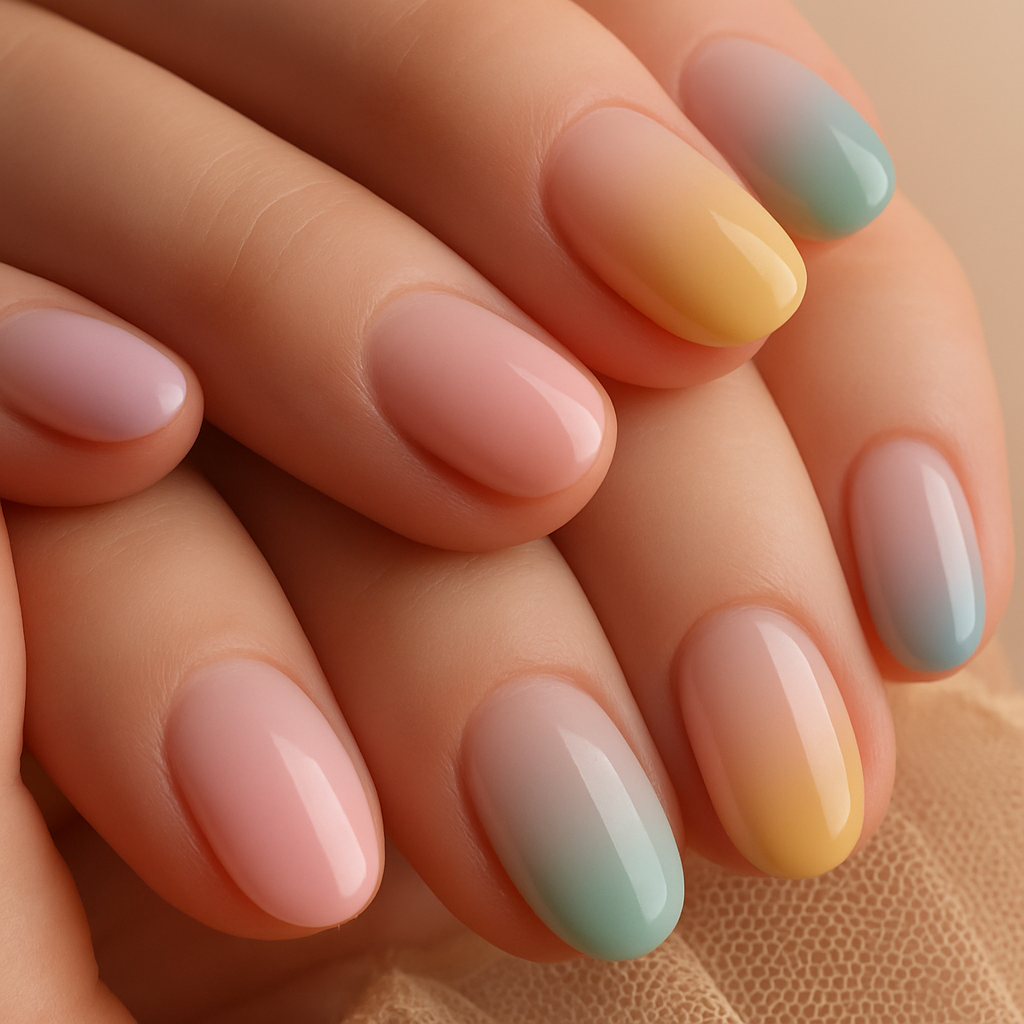 ⨠24pcs Pink & Green Gradient Press-On Nails ā Medium Oval, Glossy Finish