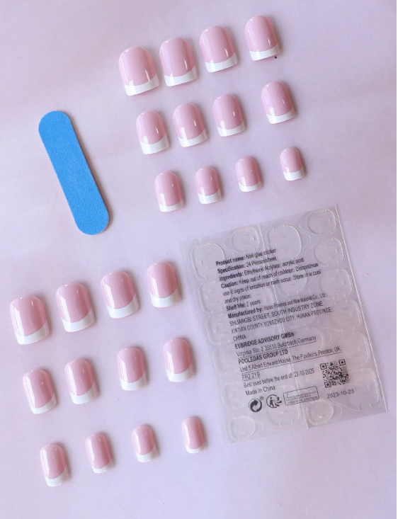30/24 piece short square French full-coverage press-on nails. Upgrade your look instantly with elegant French-style fake nails. Perfect for women and girls for daily wear and occasions. Easy to apply with long-lasting shine and strong hold. Professional manicure look in minutes. 💅✨