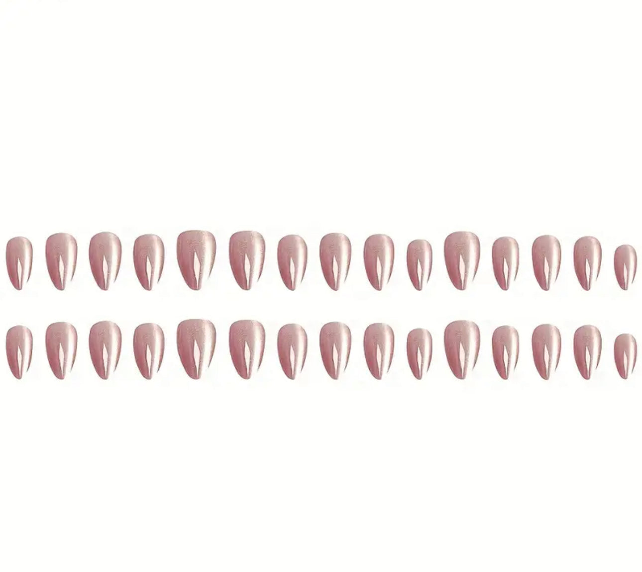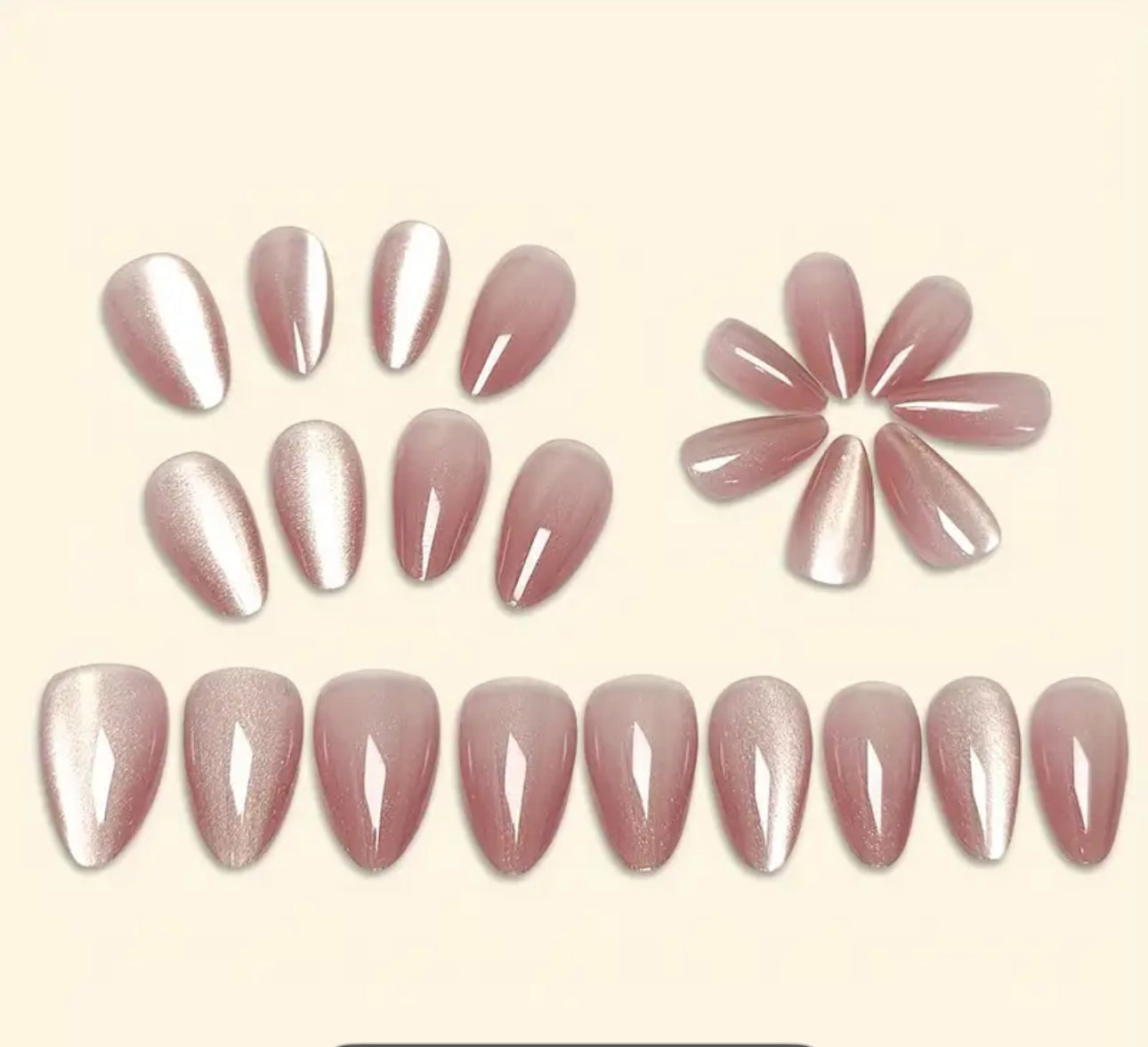 Achieve a salon-quality manicure in minutes with this Short Almond Press-On Nail Set featuring a stunning pink gradient cat eye effect and high-shine finish. Designed for comfort and durability, these reusable artificial nails provide a professional look without the salon cost.