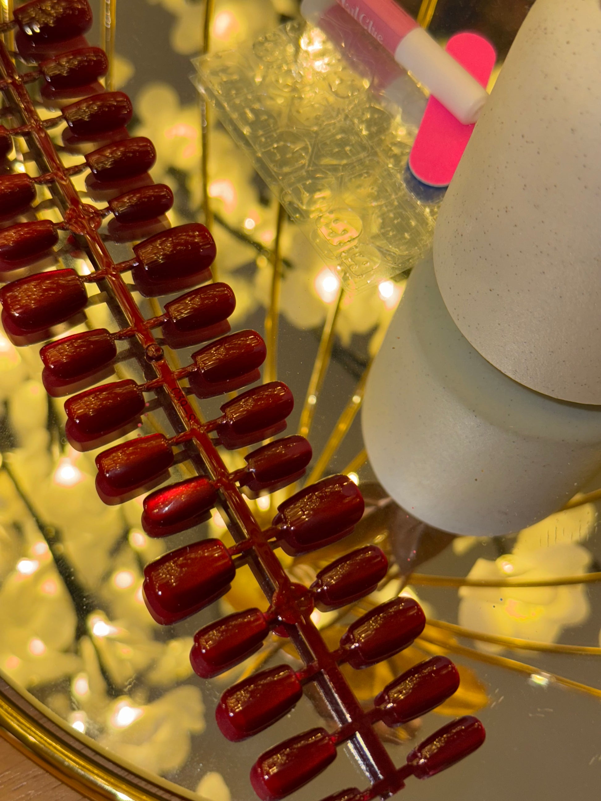 Bold and glamorous! These wine red cat eye press-ons are perfect for Christmas, daily wear, and nail art lovers in Dubai.